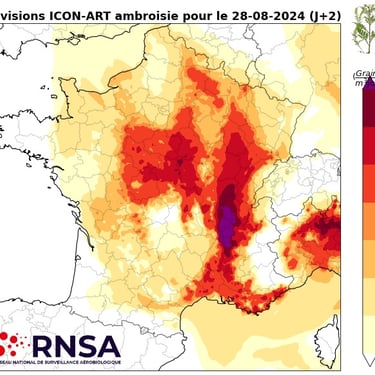 Carte de prévision de pollen d'ambroisie (Crédit image : RNSA)