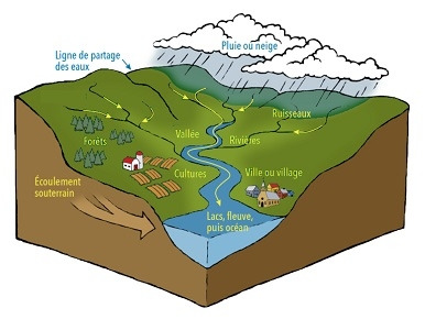 Le bassin versant est l'unité géographique qui réceptionne et collecte les eaux de pluie, et les draine vers un point unique appelé exutoire.
