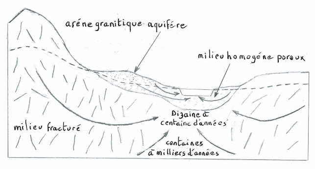 La circulation d'eau est différenciée dans les zones d'altération ou de fracturation :